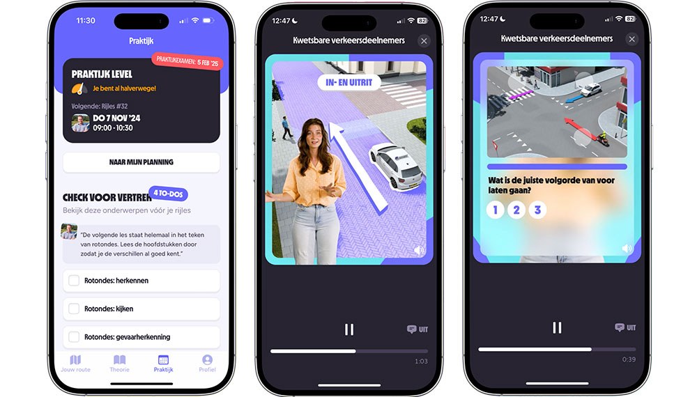 Bij Rijschool Burger kun je met de On My Way-app ook eenvoudig je theorie leren, zonder dat je een fysiek theorieboek of andere apps nodig hebt. De volledige video-theorieopleiding is namelijk geïntegreerd in de app. Je doorloopt dagelijks een aantal hoofdstukken met duidelijke uitleg. De theorie is opgedeeld in korte onderdelen, zodat je snel een deel kunt leren, of je nu onderweg bent, in een pauze zit of lekker thuis op de bank zit. Via de deeltoetsen kun je testen of je de stof goed begrepen hebt en of je deze kunt toepassen. De opleiding bevat maar liefst 32 verschillende deeltoetsen met tientallen vragen. Bovendien kun je je nog beter voorbereiden op het CBR-theorie-examen met 50 proefexamens die je een goed idee geven van wat je kunt verwachten. Deze proefexamens zijn gebaseerd op de CBR-vragen en bestaan uit onderdelen zoals gevaarherkenning, verkeersregels en verkeersinzicht. Wil je liever leren met een papieren theorieboek? Dan is dat uiteraard ook mogelijk.
